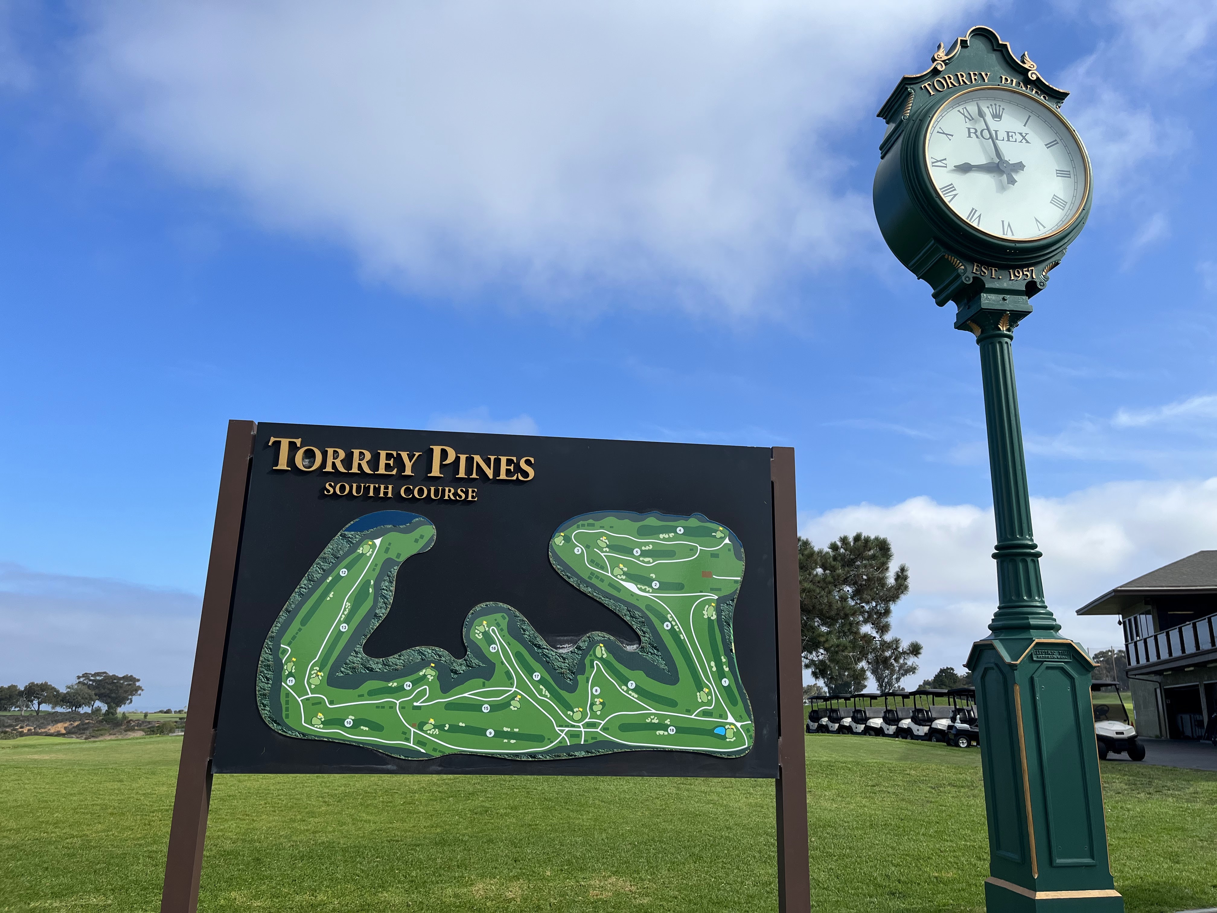 As the sun started to come up, I was able to get breakfast directly on-site at the ‘The Grill at Torrey Pines’ (connected with the Lodge). After I finished, I heard my name over the loudspeaker to report to the starter! I had secured a 9 am time on the South Course! The green fees for the South course are $220.