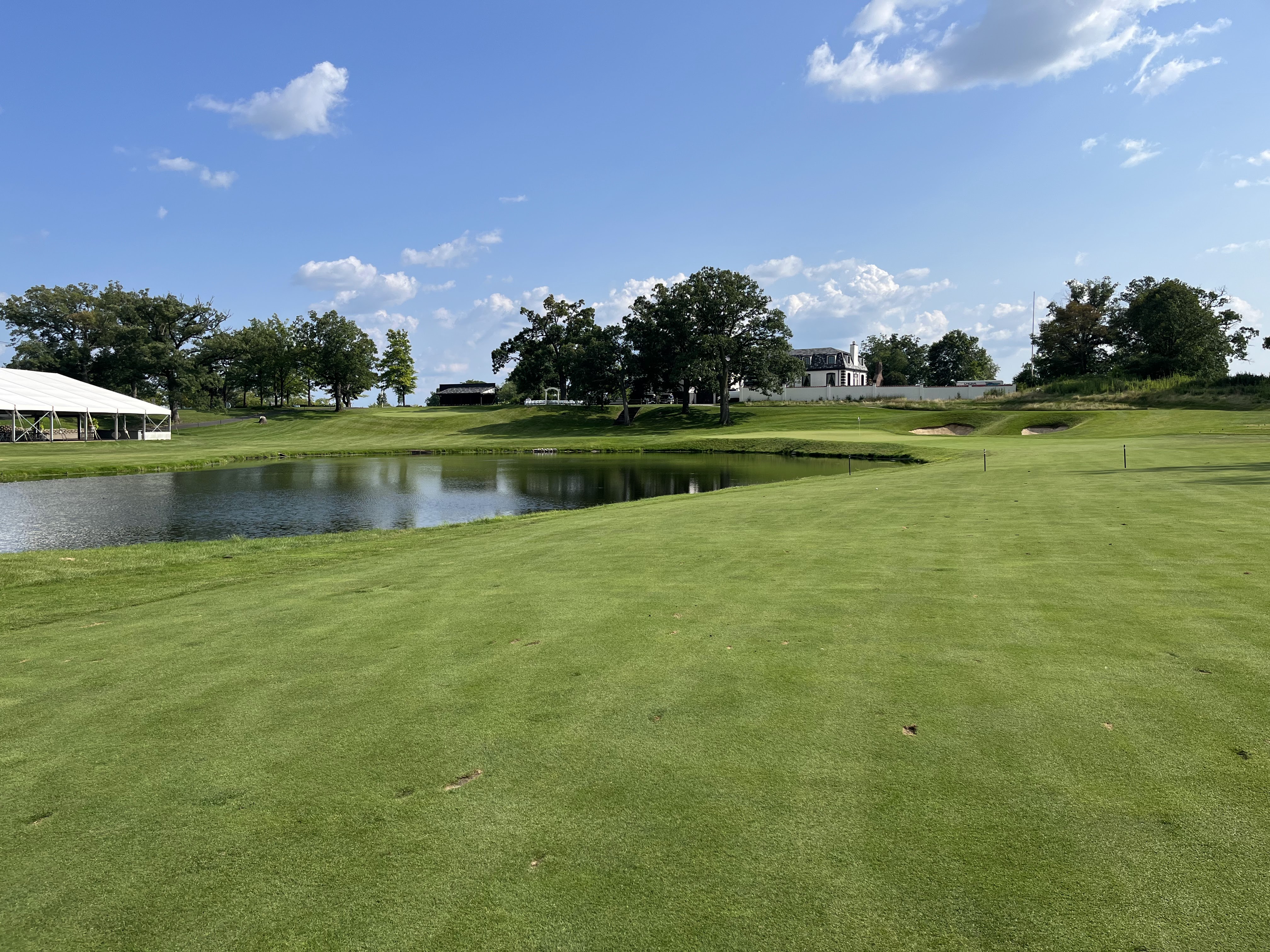 As my day wrapped up, I approached what in my opinion is Dubsdread #4’s signature hole, #18. According to the PGA’s stats on Cog Hill, #18 during PGA Tournament play consistently is the most over-par played hole on the course…meaning that this hole is no walk in the park even for the professionals. The 18th is a par 4, a 401-yard hole, that requires precision. Off the tee, you must keep the ball in the fairway and steady your nerves for your second shot. The approach is a narrow opening to the green that has water on the left and bunkers on the right and green that is once again small. Miss the green long and you are in the parking lot, miss it left or right and you are in trouble. I ended my day with an up and down to save par and looked back at the hole to take in the scenery.